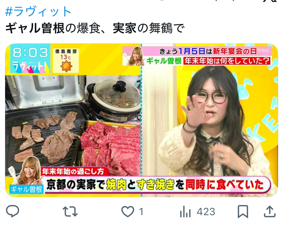 ギャル曽根さん自身も、たびたびテレビやインタビューで「大食いは母譲り」と語っています。
