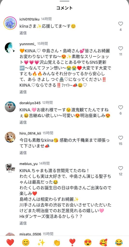ファンからもたくさんのコメントが残っており、相互の素敵なコメントが広がっています。