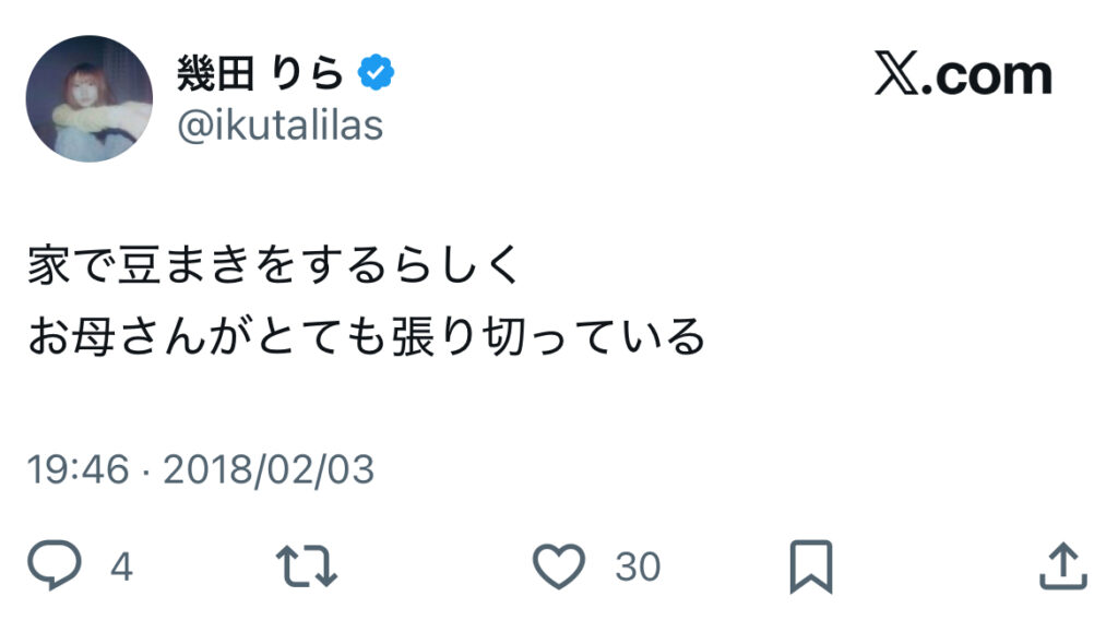 幾田さんの音楽活動も応援されており、幾田さんが情熱大陸に出演されたときは「りらちゃん、いっぱい出演してるね!」とかわいいコメントを送っていたようです。