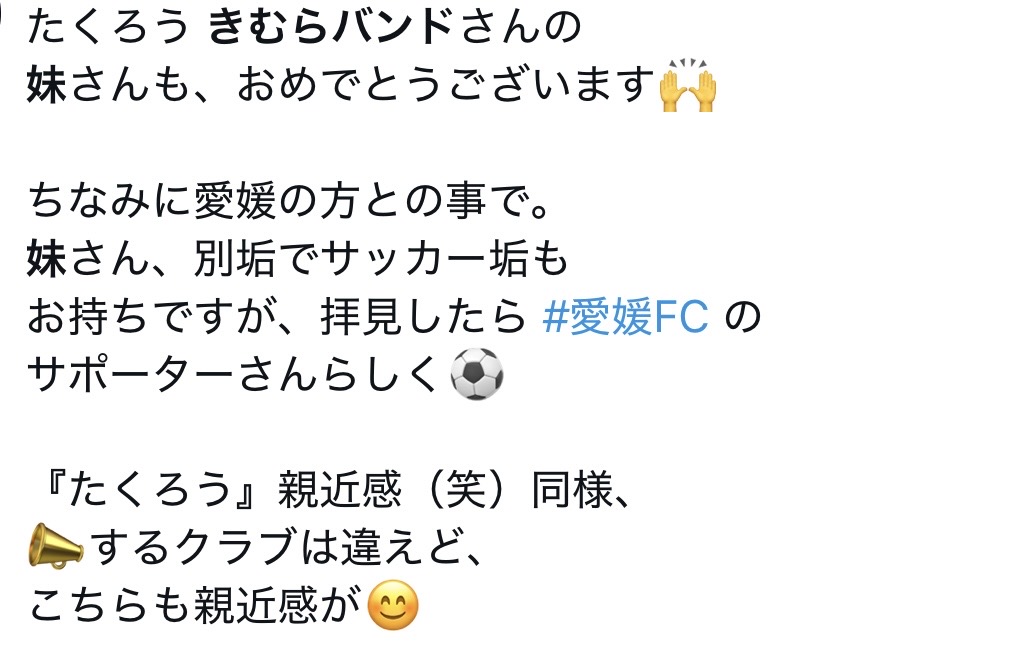 きむらバンドの妹は愛媛FCのサポーター!