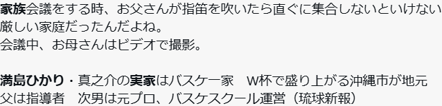 満島ひかりさんの家族は沖縄では有名なバスケ一家だったのですね。