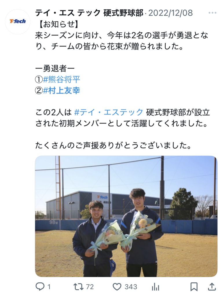 最終的に村上友幸は、自身のSNSで野球からの引退を発表。