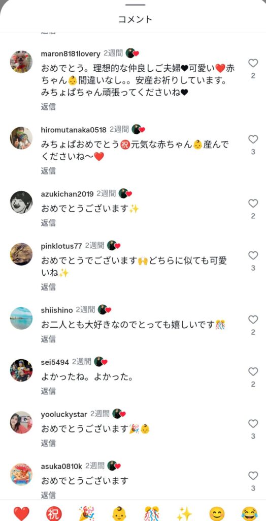 こちらの投稿にもたくさんのファンからコメントが入っており、お互いのファンからたくさんのお祝いされています。