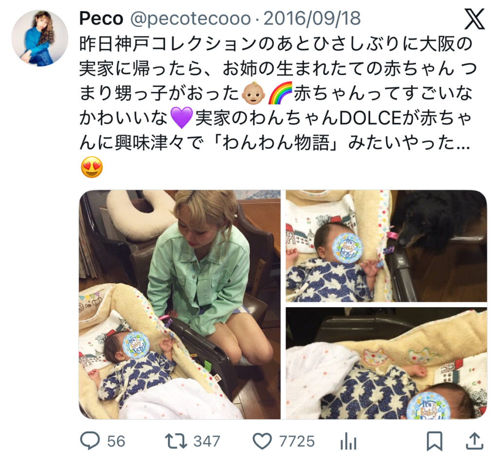 2016年には甥っ子と会う様子がSNSに投稿されていました。