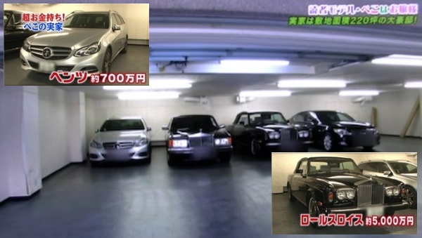 また、高層ビルの地下駐車場のようだと形容される車庫には、ロールスロイス(約5,000万円)など高級車が4台も所有されているとのことです。