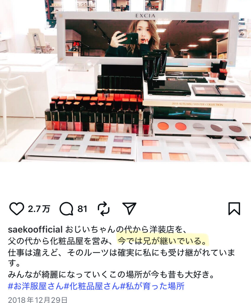 紗栄子さん本人も、自身のブログで「実家がお化粧品屋さんです」と明かしています。