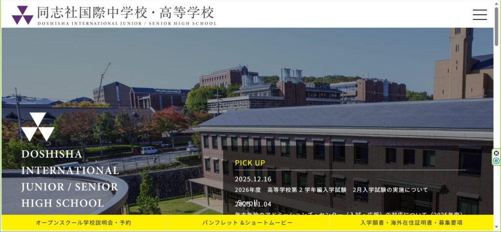 中高一貫の学校で、高校卒業後はほとんどの生徒が同志社大学に進学されるそうです。