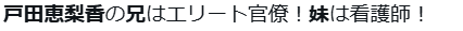 戸田恵梨香さんの実家について、やはり兄の職業は官僚だという情報がありました。